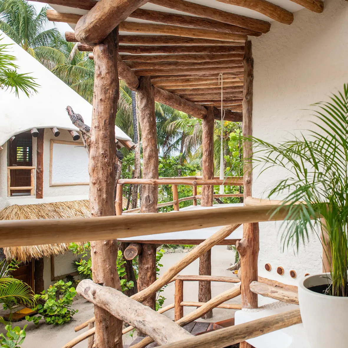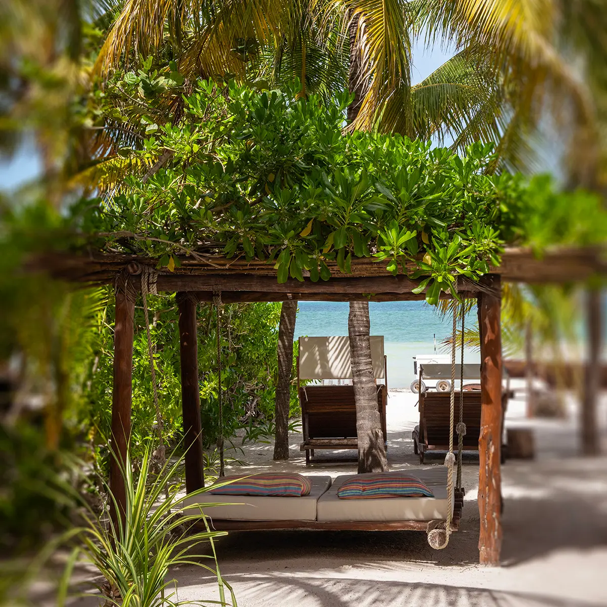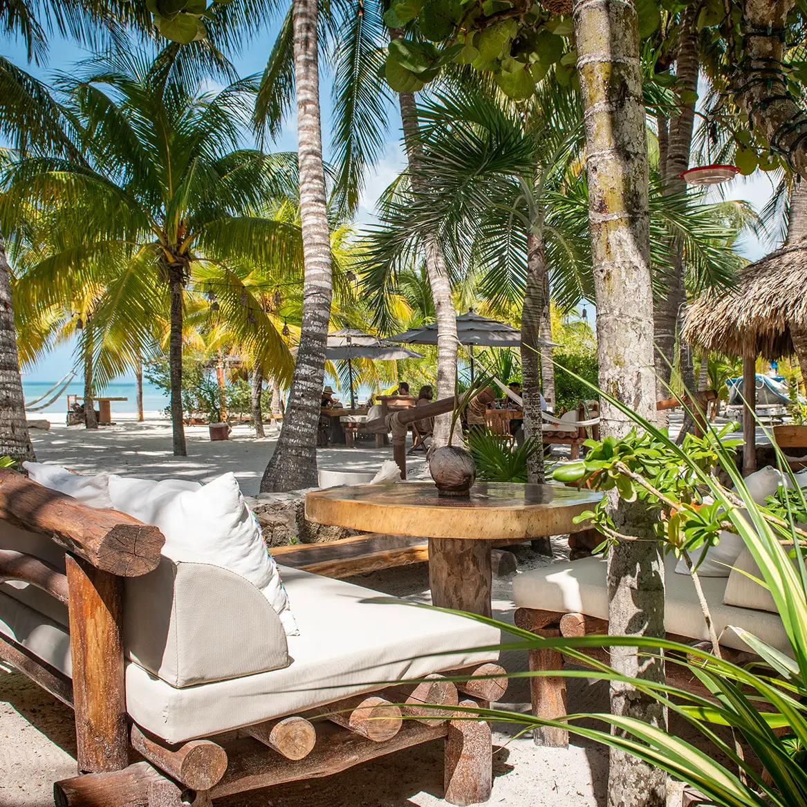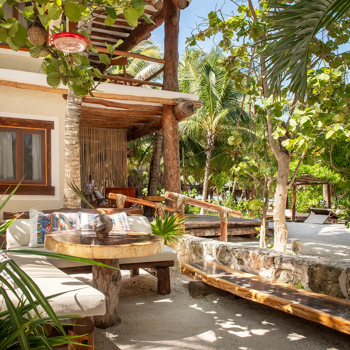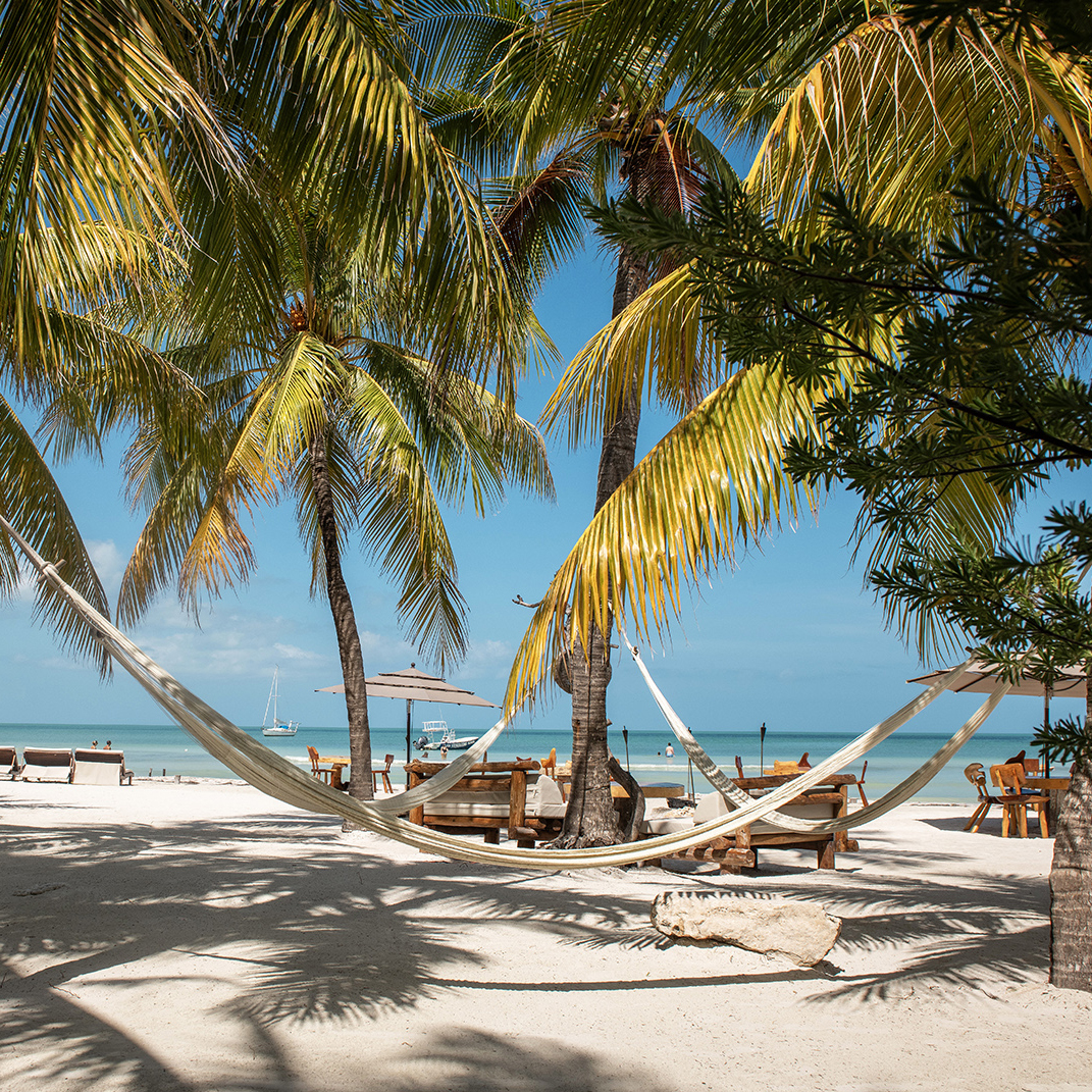 Mawimbi Hotel, located on Holbox Island. Our charming and cozy hotel has a beautiful garden, in front of a spectacular beach and an excellent location near the main square. In addition, its restaurant service is available from 7:30 am to 10 pm, offering delicious options for all tastes in front of the beach where you can enjoy a beautiful view of the beach. The rest area is equipped with large and comfortable sun loungers, as well as hammocks so you can relax and disconnect from daily stress. The atmosphere is calm, relaxed, luxurious and perfect to enjoy your best moments. The hotel has 14 charming rooms that offer amenities such as wifi, bidet, hair dryer, shampoo, conditioner and organic body soap. In addition, you will find a special soap for the face with natural and handmade essential oils. The beds are super comfortable and the sheets are made of organic and natural fibers. They also have air conditioning, a fan and a safe for your safety. Mawimbi stands out for its personalized service, from the moment you make your reservation until you return home. In addition, they offer additional services at an extra cost, such as transportation, massages, tours and recommendations to visit special places on the island.