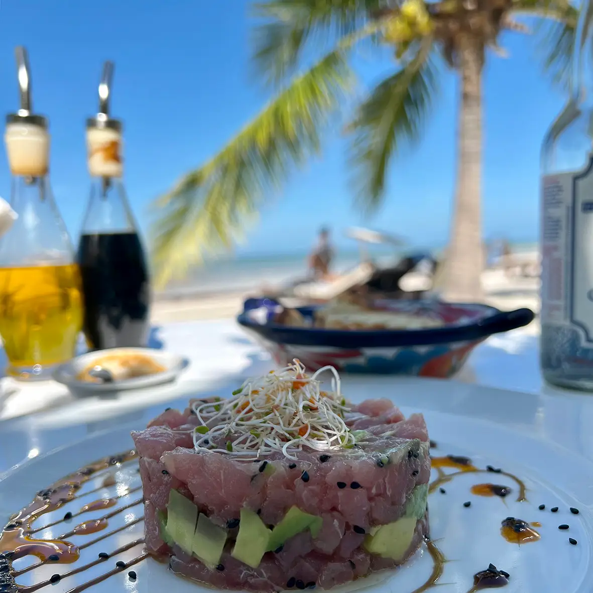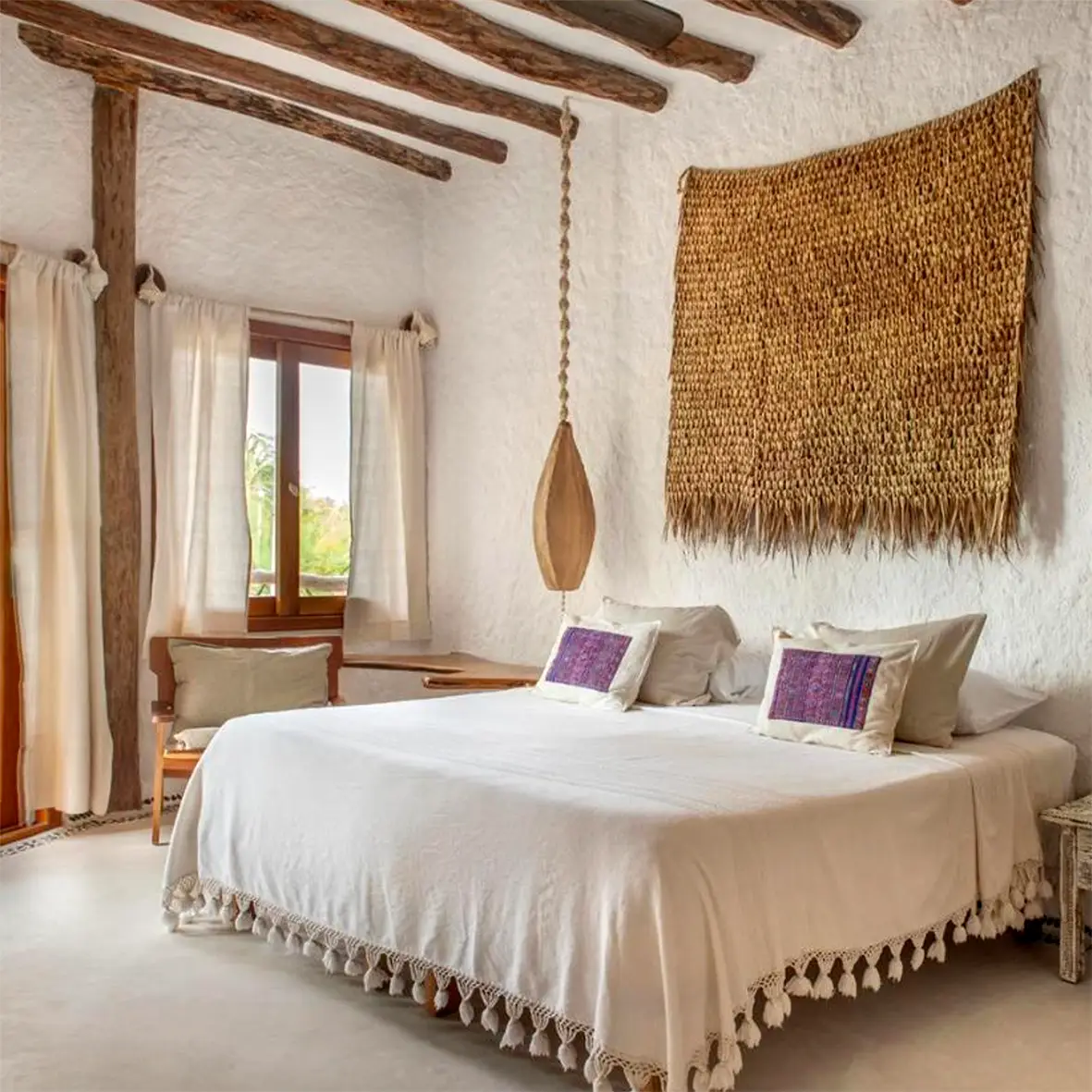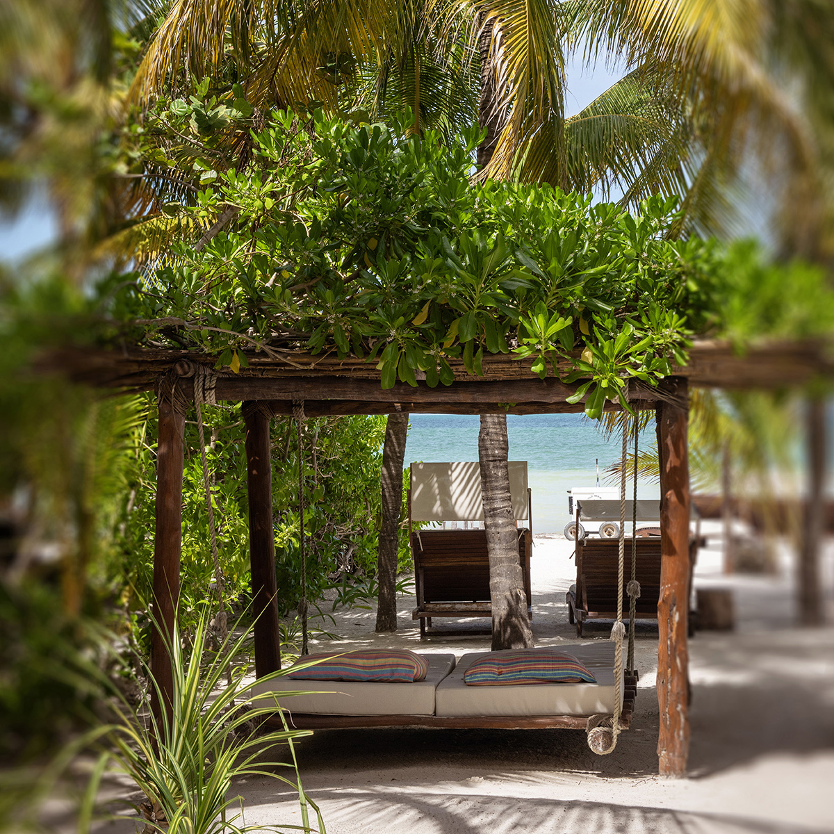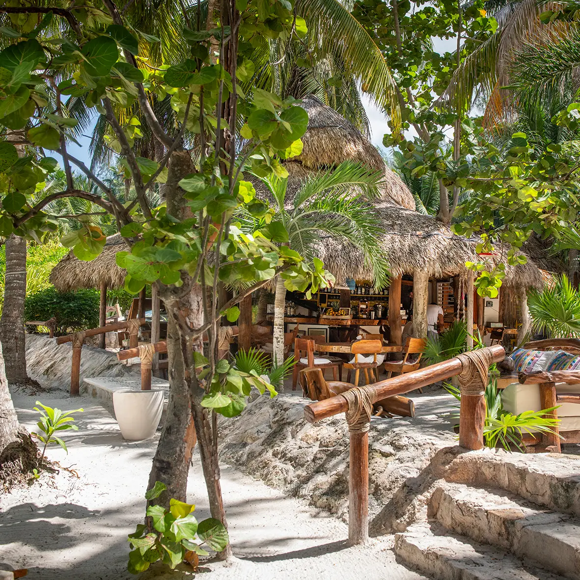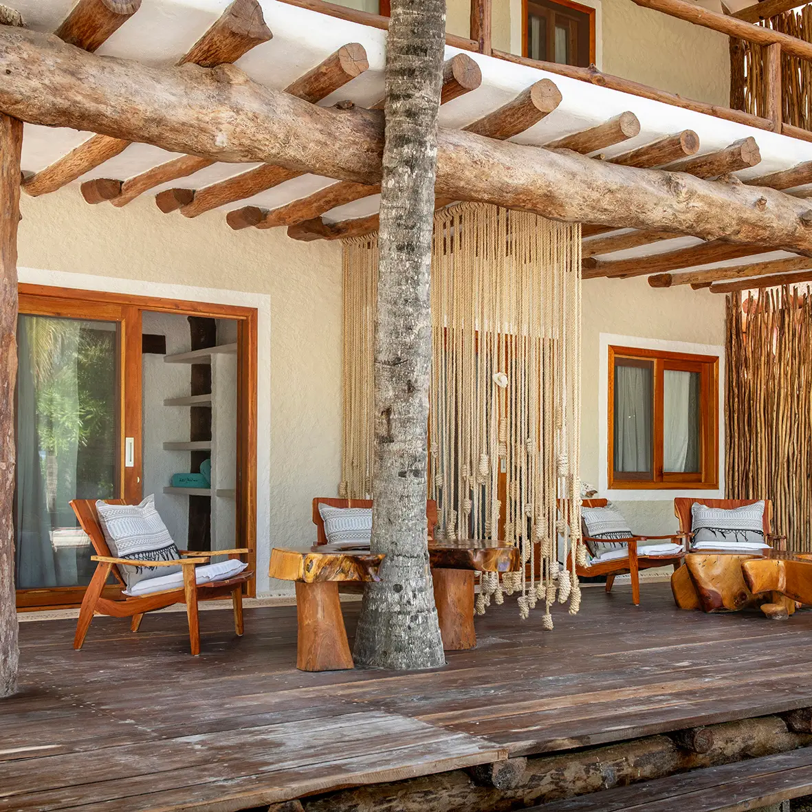 Mawimbi Hotel, located on Holbox Island. Our charming and cozy hotel has a beautiful garden, in front of a spectacular beach and an excellent location near the main square. In addition, its restaurant service is available from 7:30 am to 10 pm, offering delicious options for all tastes in front of the beach where you can enjoy a beautiful view of the beach. The rest area is equipped with large and comfortable sun loungers, as well as hammocks so you can relax and disconnect from daily stress. The atmosphere is calm, relaxed, luxurious and perfect to enjoy your best moments. The hotel has 14 charming rooms that offer amenities such as wifi, bidet, hair dryer, shampoo, conditioner and organic body soap. In addition, you will find a special soap for the face with natural and handmade essential oils. The beds are super comfortable and the sheets are made of organic and natural fibers. They also have air conditioning, a fan and a safe for your safety. Mawimbi stands out for its personalized service, from the moment you make your reservation until you return home. In addition, they offer additional services at an extra cost, such as transportation, massages, tours and recommendations to visit special places on the island.